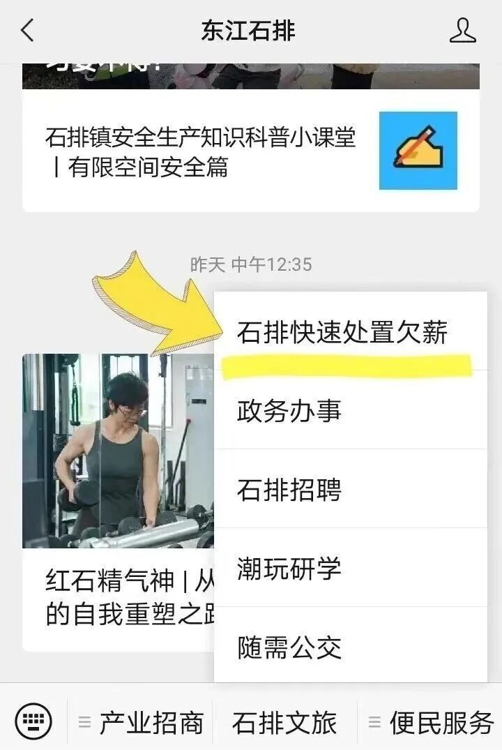 △东江石排菜单栏也可直接进入“石排快速处置欠薪”
